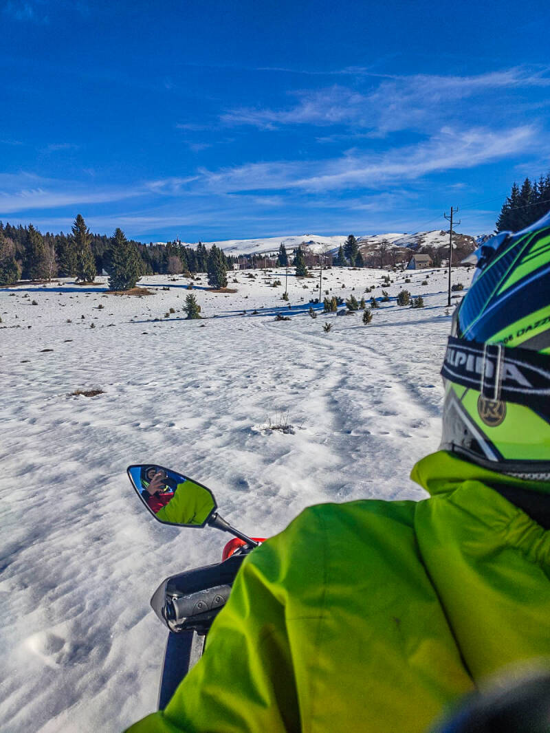 هذه هي الصورة التي تنتظركم في تجربة سفاري شتوية مميزة على الدراجات الثلجية عبر براري جبل فلاشيتش.